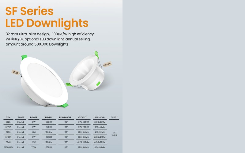 Our Ultra-slim LED Downlight SF Series, in 2025 have excellent market performance,annual selling amount around 500,000 downlights.