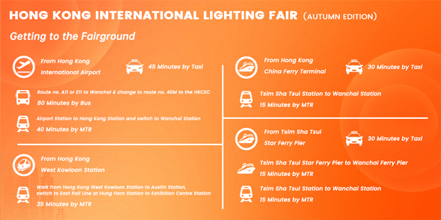 Here's transport information and route guidance for the HK International Lighting Fair once you arrive.