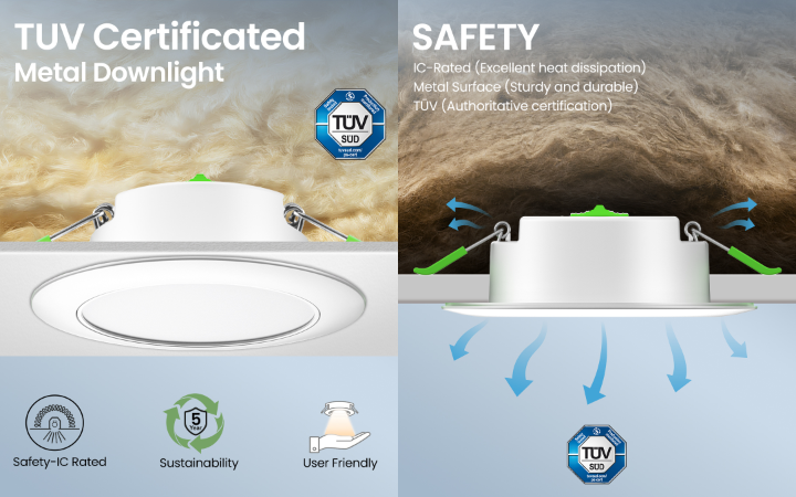 Safety: Excellent heat dissipation(IC Rated) • Sturdy metal body • TUV certified
